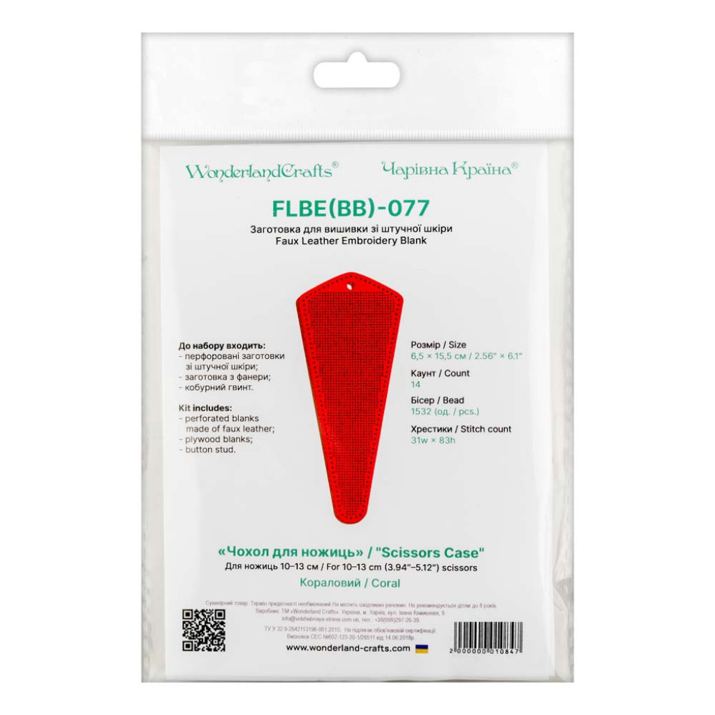 FLBE(BB)-077 Wonderland Crafts Заготовка для вишивки - Чохол для ножиць 6,5x15,5 см (кораловий, штучна шкіра)