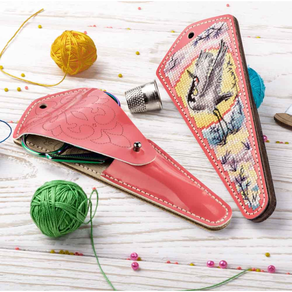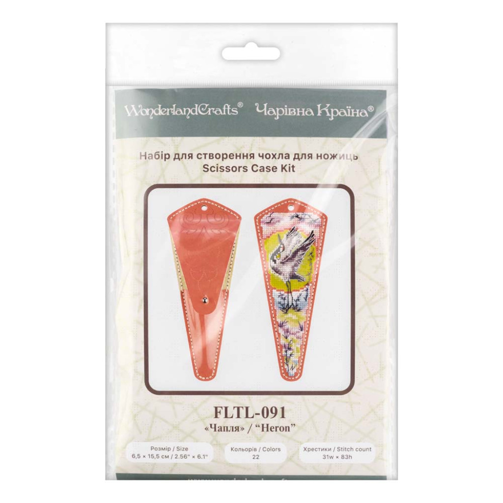 FLTL-091 Wonderland Crafts Набір для вишивки рахунковим хрестиком на штучній шкірі - Чохол для ножиць Чапля 6,5x15,5 см