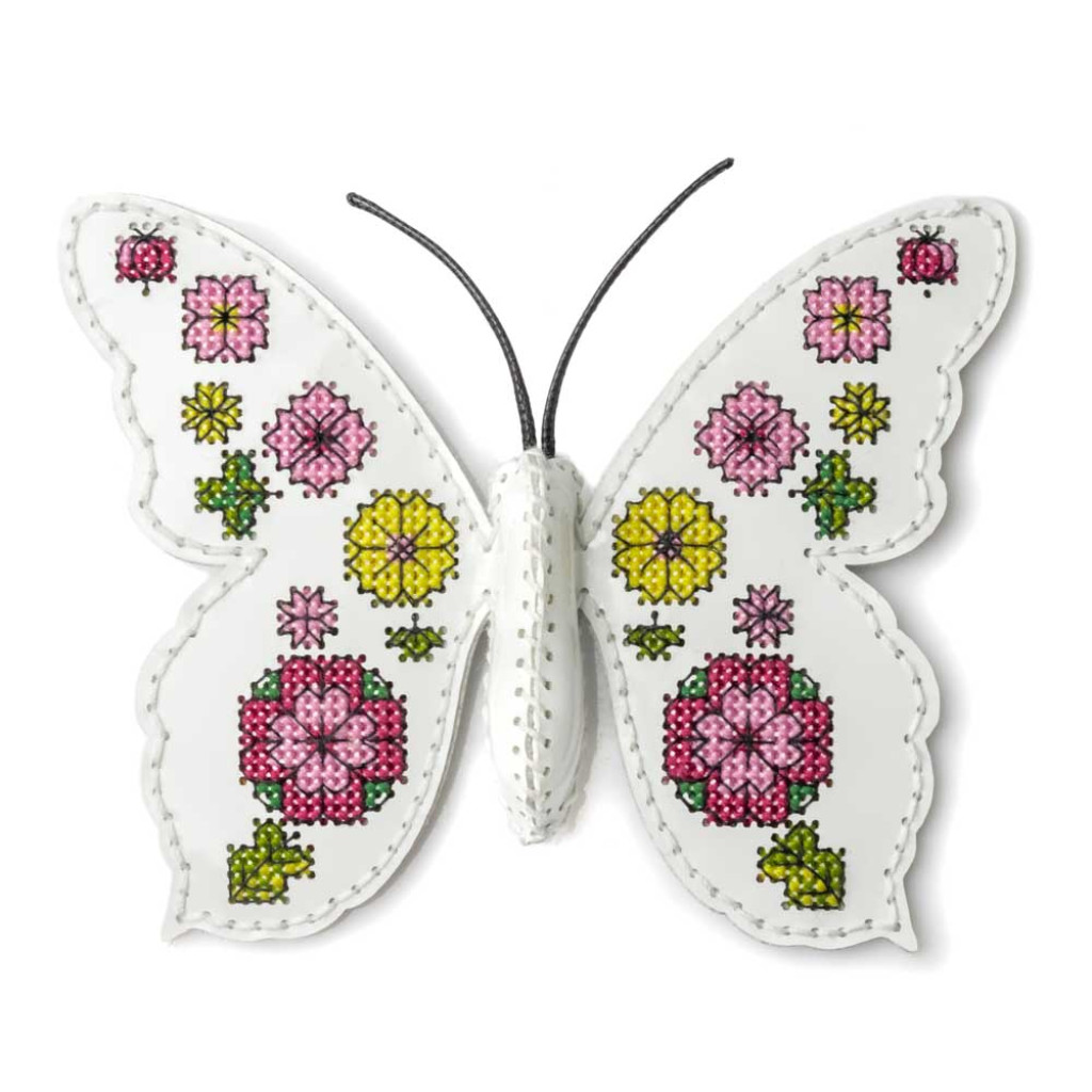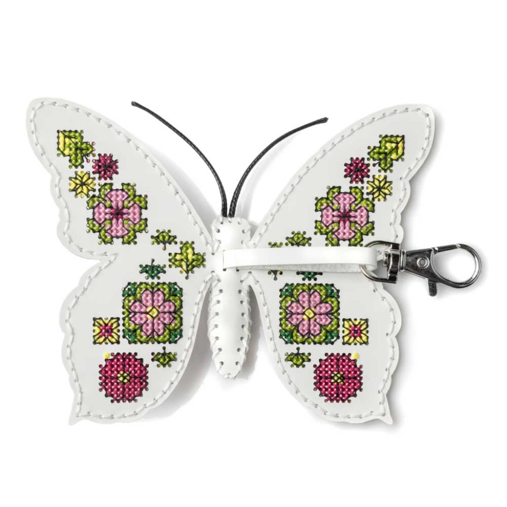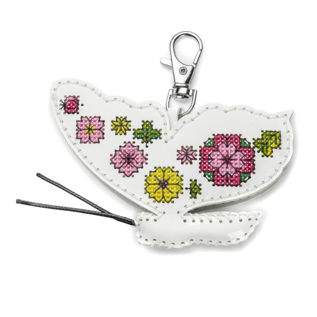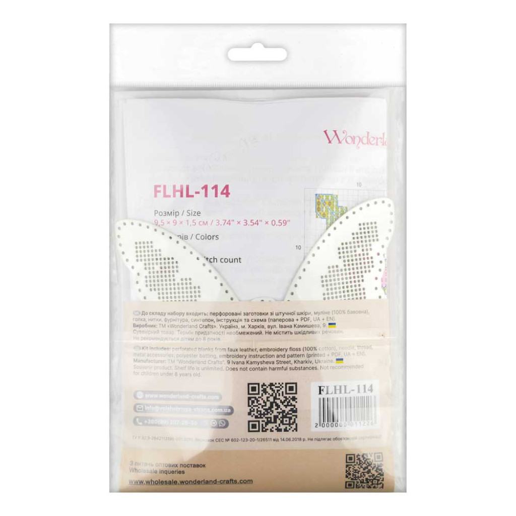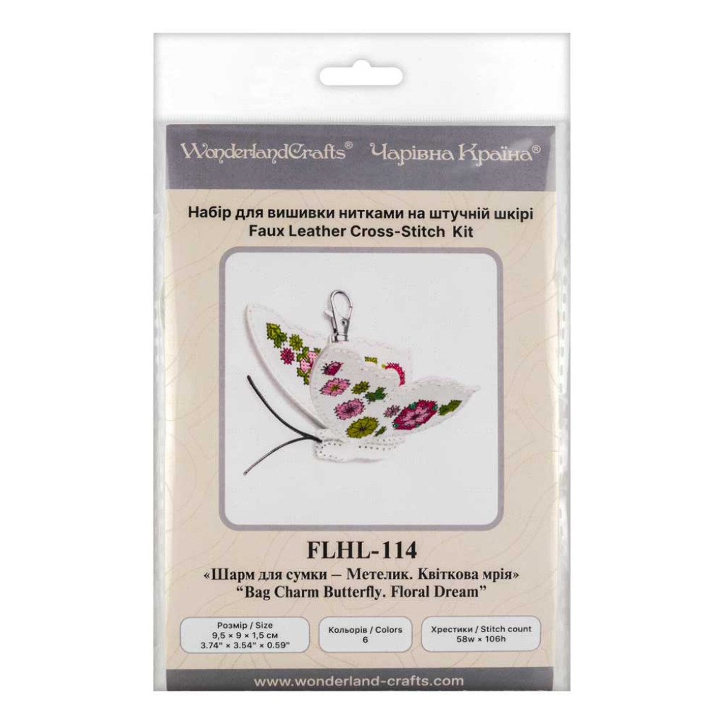 FLHL-114 Wonderland Crafts Набір для вишивки нитками на штучній шкірі - Шарм для сумки – Метелик. Квіткова мрія, 9,5x9x1,5 см