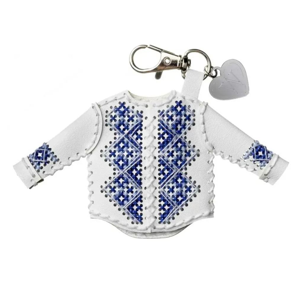 FLHL-130 Wonderland Crafts Набір для вишивки нитками на штучній шкірі - Шарм для сумки – Вишиванка. Блакитна гармонія, 6x10,5 см