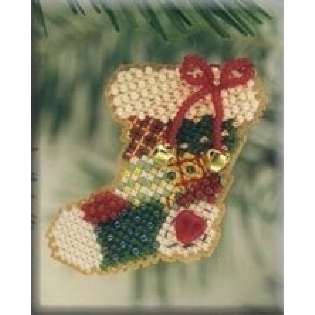 h101 Mill Hill Набір для вишивки рахунковим хрестиком + бісером - Магніт Петчворк Панчоха Patchwork Stocking 6x6 см, перфорований папір