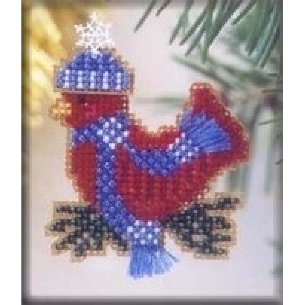 h105 Mill Hill Набір для вишивки рахунковим хрестиком + бісером - Магніт Засніжений червоний птах Snowcapped Red Bird 6x6 см, перфорований папір