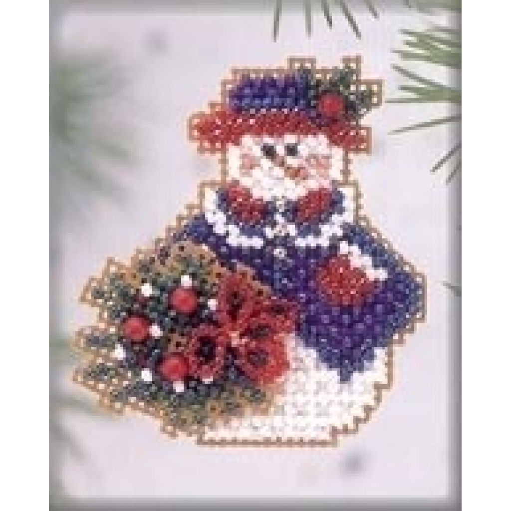 h112 Mill Hill Набір для вишивки рахунковим хрестиком + бісером - Магніт Зимова снігова леді Wintertime Snowlady 6x6 см, перфорований папір