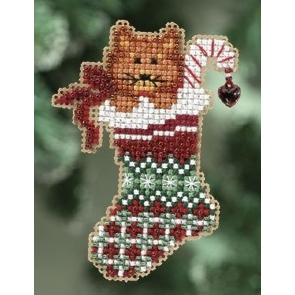 MH180301 Mill Hill Набір для вишивки рахунковим хрестиком + бісером - Магніт Кошеня Kitty's Stocking 5x8 см, перфорований папір