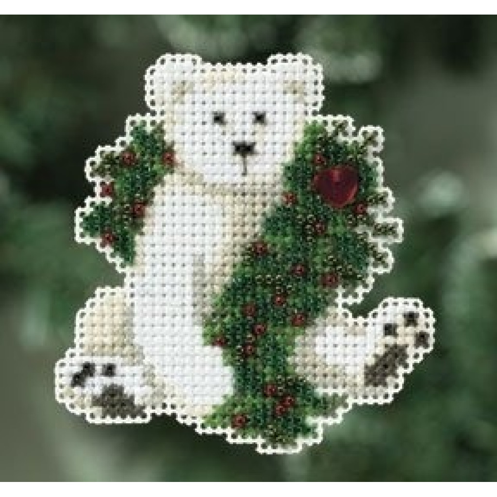 MH180306 Mill Hill Набір для вишивки рахунковим хрестиком + бісером - Магніт Святковий полярний ведмідь Holiday Polar Bear 6x7 см, перфорований папір