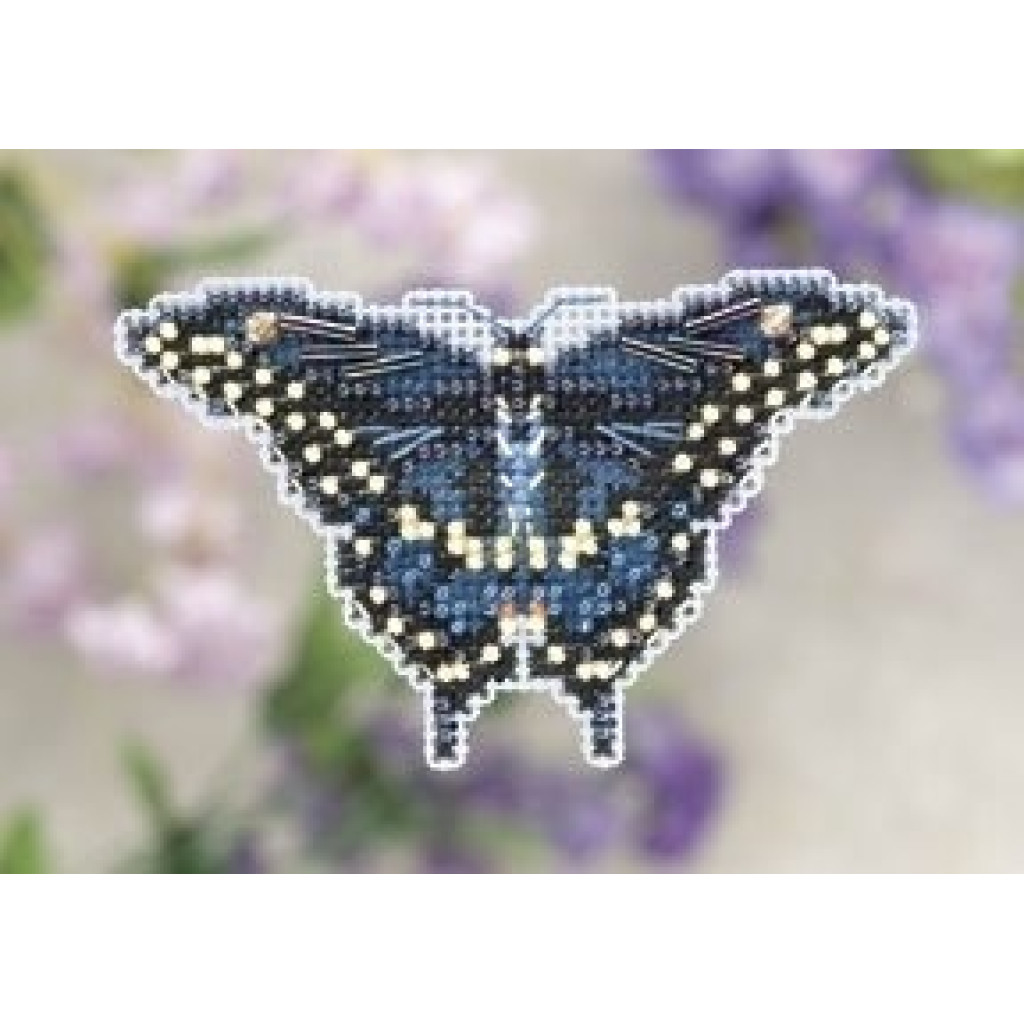 MH181103 Mill Hill Набір для вишивки рахунковим хрестиком + бісером - Магніт Чорний метелик Black Swallowtail 6x6 см, перфорований папір