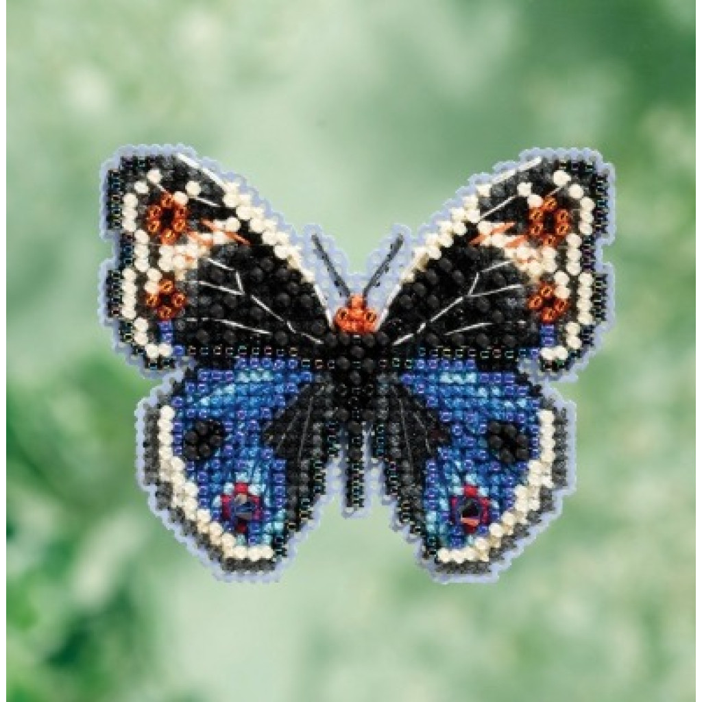 MH181711 Mill Hill Набір для вишивки рахунковим хрестиком + бісером - Магніт Синій метелик Blue Pansy Butterfly 6x7 см, перфорований папір
