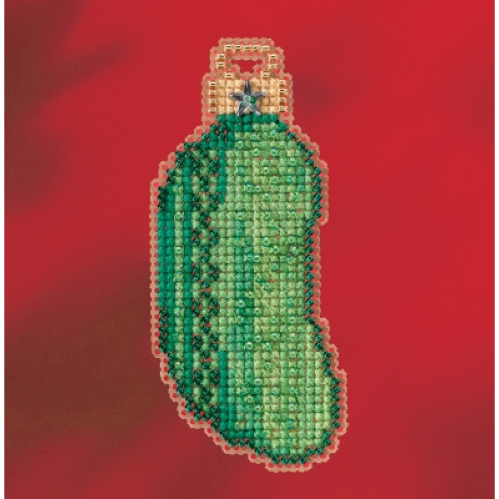 MH181734 Mill Hill Набір для вишивки рахунковим хрестиком + бісером - Магніт Різдвяний огірок Christmas Pickle 9x4 см, перфорований папір