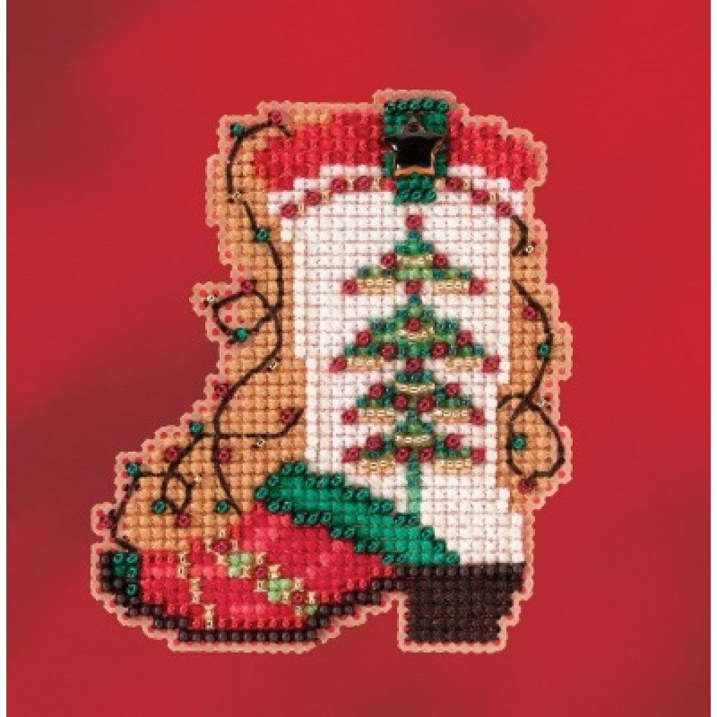 MH181736 Mill Hill Набір для вишивки рахунковим хрестиком + бісером - Магніт Святкові черевики Holiday Boot 6x8 см, перфорований папір