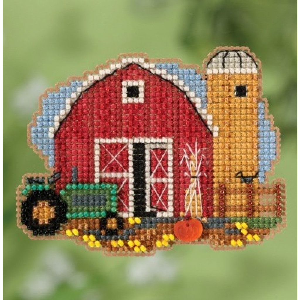 MH181821 Mill Hill Набір для вишивки рахунковим хрестиком + бісером - Магніт Хлів Harvest Barn 8x6 см, перфорований папір