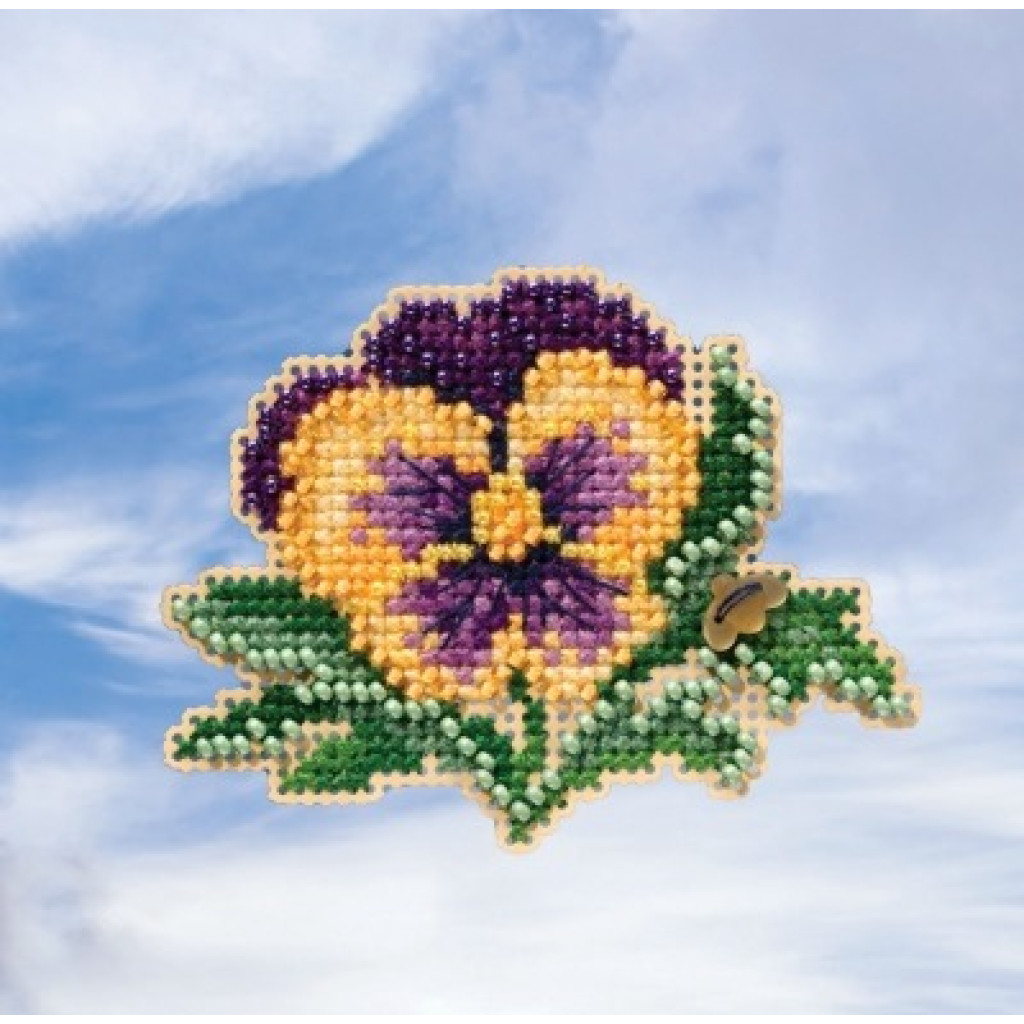 MH181911 Mill Hill Набір для вишивки рахунковим хрестиком + бісером - Магніт Квітка Tricolor Pansy 5x8 см, перфорований папір
