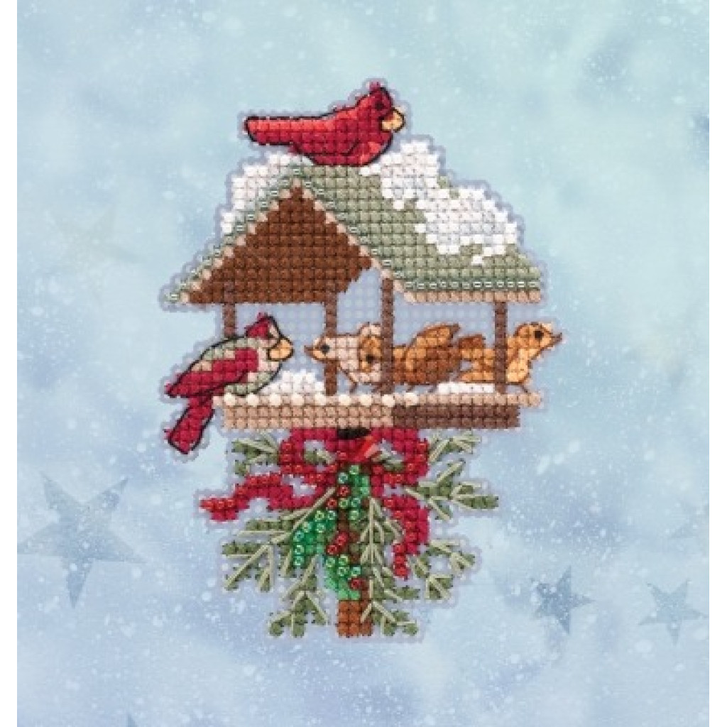 MH182032 Mill Hill Набір для вишивки рахунковим хрестиком + бісером - Магніт Зимова годівниця Winter Feast 6x9 см, перфорований папір