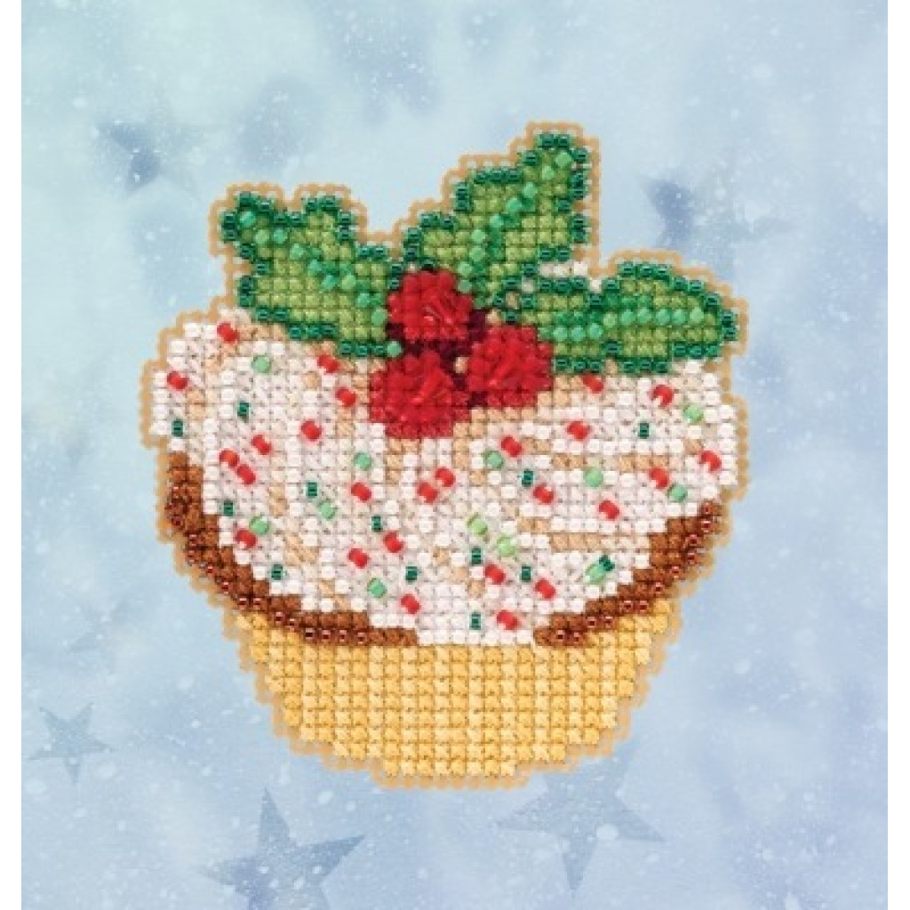 MH182033 Mill Hill Набір для вишивки рахунковим хрестиком + бісером - Магніт Кекс Holly Cupcake 6x9 см, перфорований папір