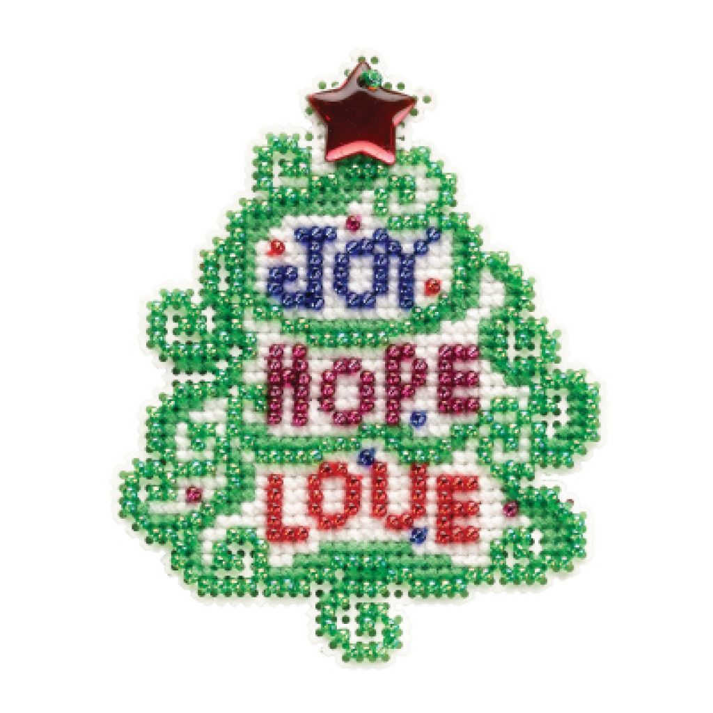 Декоративний магніт Радість, Надія, Любов Joy, Hope, Love Mill Hill у техніці рахункового хрестика з використанням бісеру та керамічних деталей поєднують яскравий дизайн і високу якість матеріалів. Завдяки детальній символічній схемі й оригінальному поєднанню ниток та бісеру процес вишивання буде захопливим, а результат – об’ємним і виразним. Готова робота прикрасить ваш інтер’єр або стане чудовим подарунком.