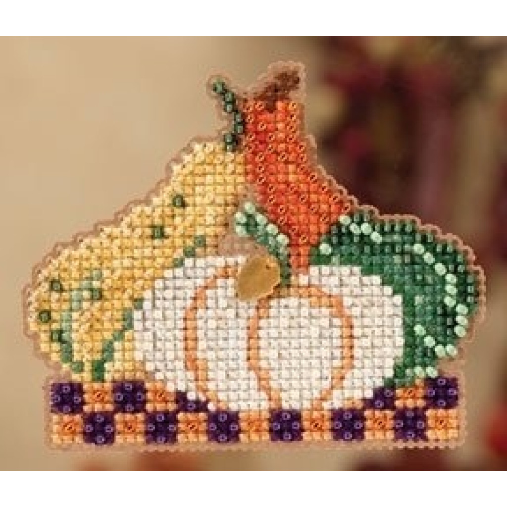 Набір для вишивки Гарбузи Gourds Mill Hill у техніці рахункового хрестика з використанням бісеру поєднують яскравий дизайн і високу якість матеріалів. Завдяки детальній символічній схемі й оригінальному поєднанню ниток та бісеру процес вишивання буде захопливим, а результат – об’ємним і виразним. Готова робота прикрасить ваш інтер’єр або стане чудовим подарунком.