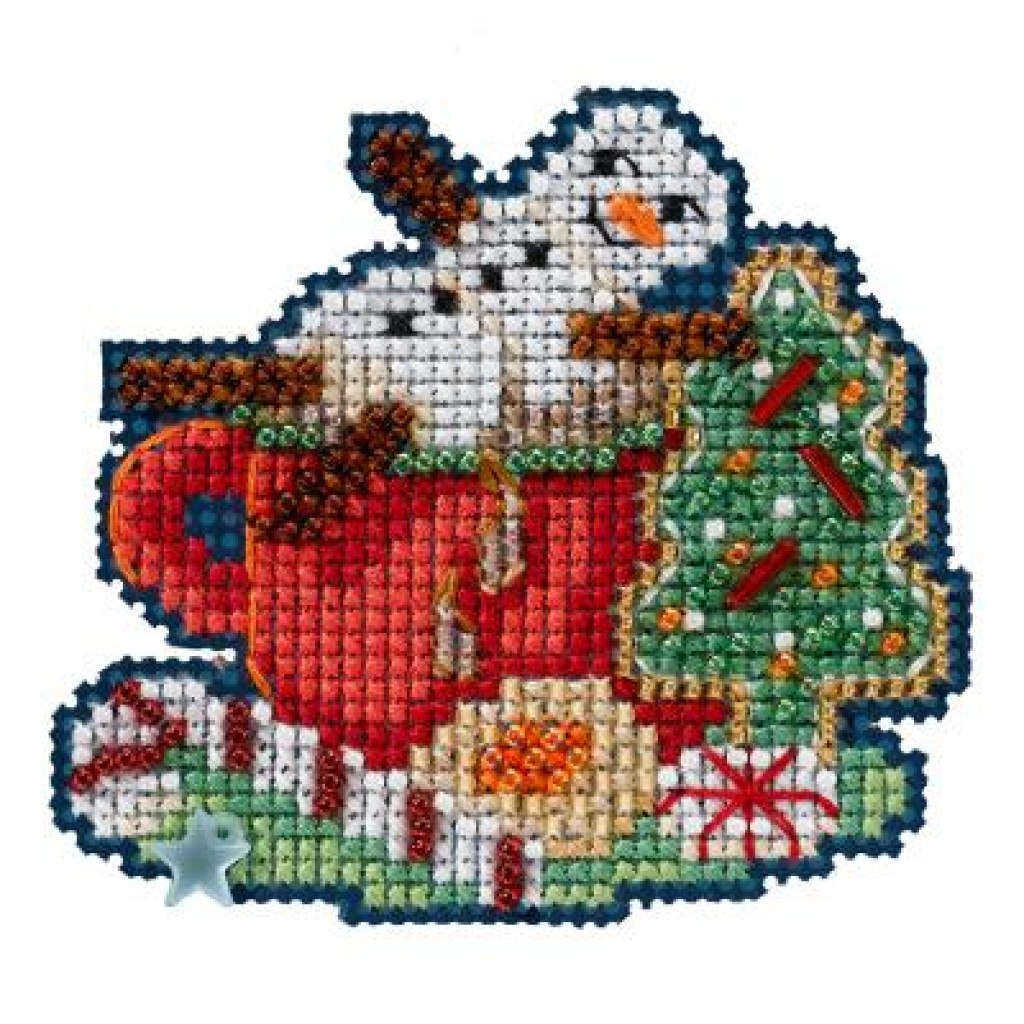 MH182231 Mill Hill Набір для вишивки рахунковим хрестиком + бісером - Магніт Зефірний сніговик Marshmallow Snowman 7x6 см, перфорований папір