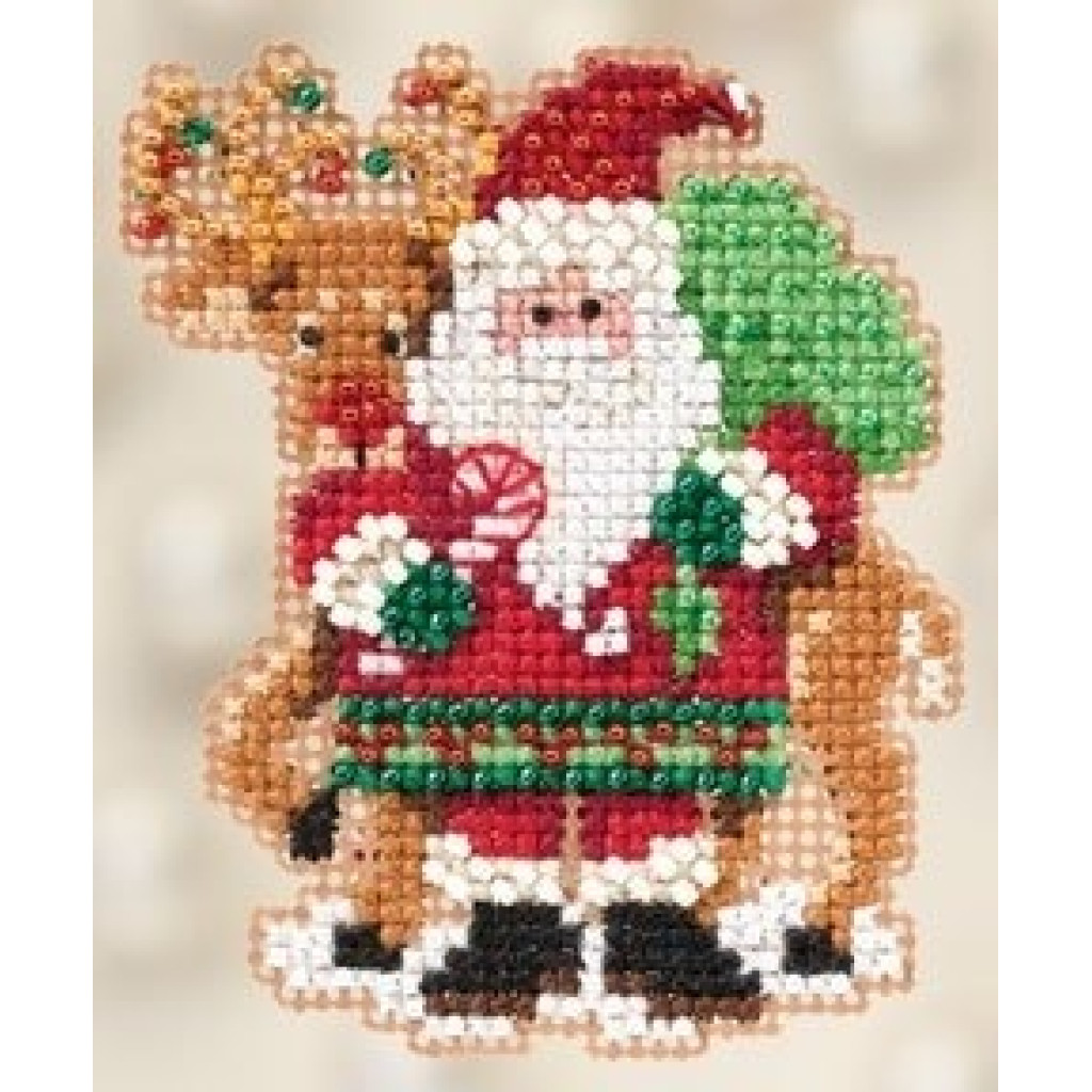 MH182305 Mill Hill Набір для вишивки рахунковим хрестиком + бісером - Магніт Санта і Рудольф Santa and Rudolph 6x6 см, перфорований папір