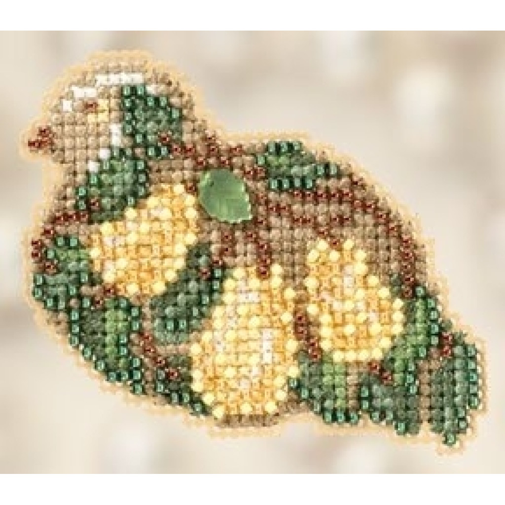 MH182306 Mill Hill Набір для вишивки рахунковим хрестиком + бісером - Магніт Грушева куріпка Pear Tree Partridge 6x7 см, перфорований папір