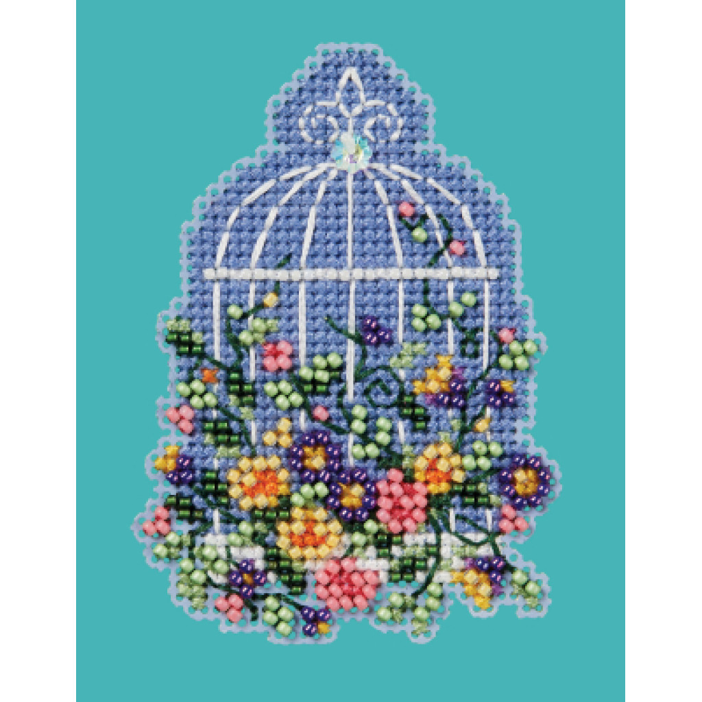 MH182416 Mill Hill Набір для вишивки рахунковим хрестиком + бісером - Магніт Квіткова пташина клітка Floral Birdcage 6x8 см, перфорований папір