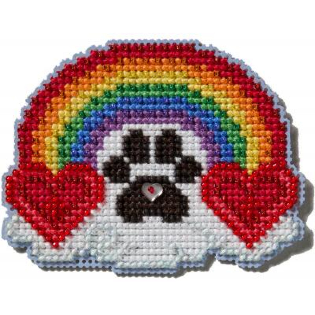 Декоративний магніт Любов до тваринок Pawsitively Love Mill Hill у техніці рахункового хрестика з використанням бісеру поєднують яскравий дизайн і високу якість матеріалів. Завдяки детальній символічній схемі й оригінальному поєднанню ниток та бісеру процес вишивання буде захопливим, а результат – об’ємним і виразним. Готова робота прикрасить ваш інтер’єр або стане чудовим подарунком.