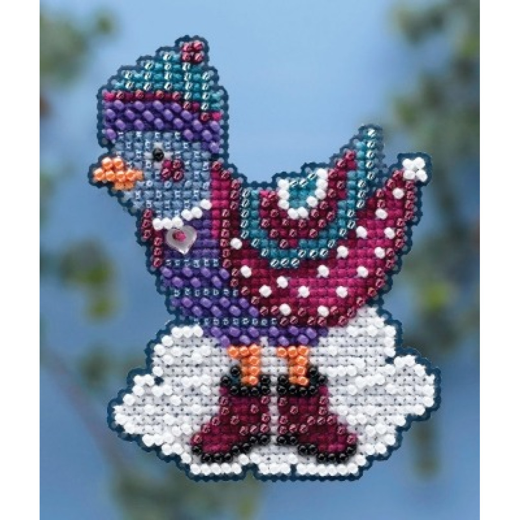 MH184303 Mill Hill Набір для вишивки рахунковим хрестиком + бісером - Магніт Зимова птаха Winter Bird 6x6 см, перфорований папір