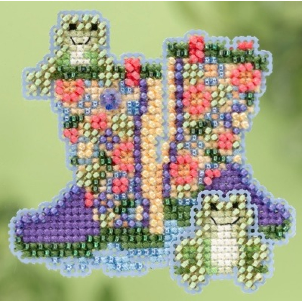 MH185101 Mill Hill Набір для вишивки рахунковим хрестиком + бісером - Магніт Садове взуття Garden Boots 6x6 см, перфорований папір