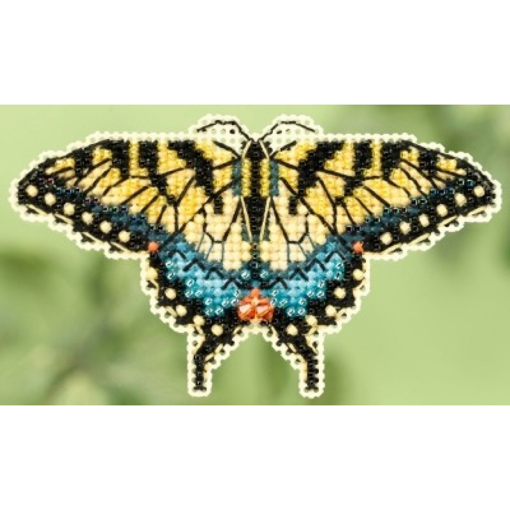 MH185104 Mill Hill Набір для вишивки рахунковим хрестиком + бісером - Магніт Жовтий метелик Yellow Swallowtail 6x6 см, перфорований папір