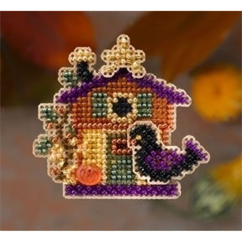 MH186203 Mill Hill Набір для вишивки рахунковим хрестиком + бісером - Магніт Дім Хелловіна Halloween House 6x6 см, перфорований папір