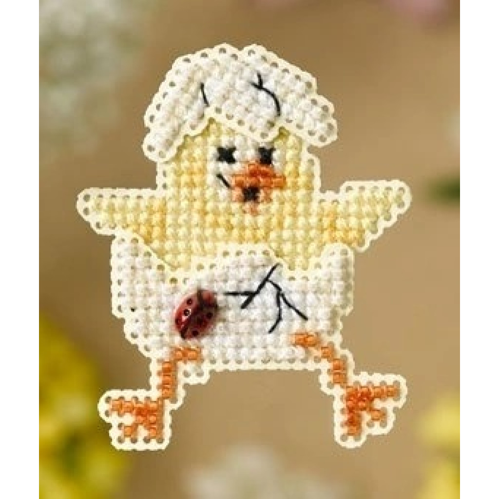 MH188101 Mill Hill Набір для вишивки рахунковим хрестиком + бісером - Магніт Весняне курча Spring Chick 6x6 см, перфорований папір