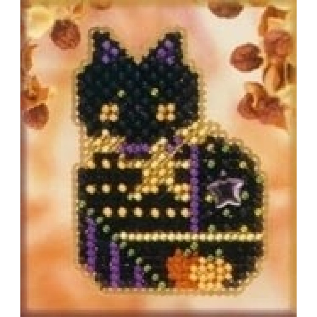 MHAH43 Mill Hill Набір для вишивки рахунковим хрестиком + бісером - Магніт Зачароване кошеня Haunted Kitty 6x6 см, перфорований папір