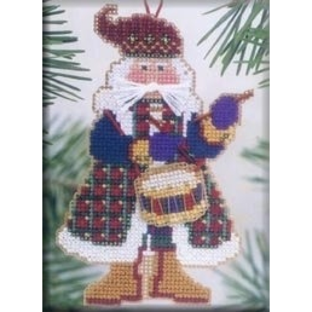 MHMS11 Mill Hill Набір для вишивки рахунковим хрестиком + бісером - Магніт Санта Drum Santa 8x13 см, перфорований папір