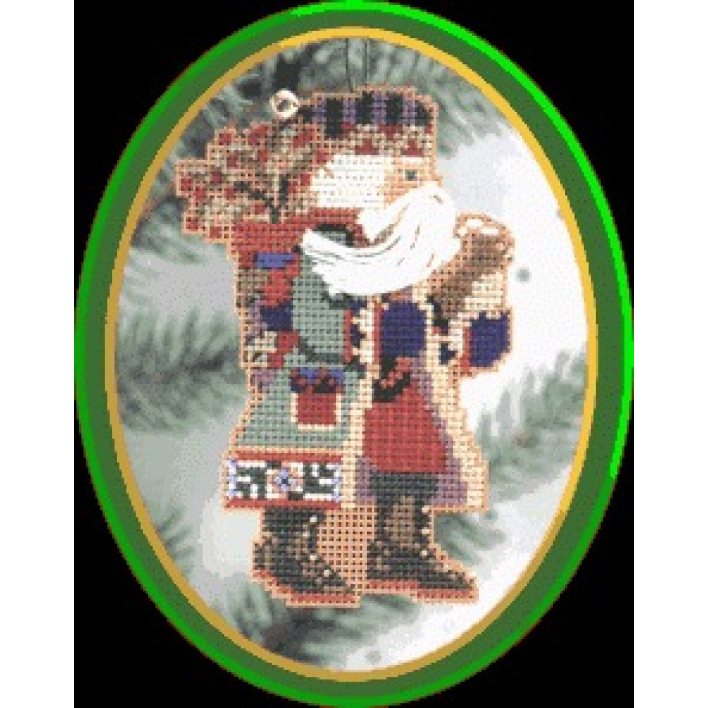 MHNS2 Mill Hill Набір для вишивки рахунковим хрестиком + бісером - Магніт Санта з падубом Juniper Branch Santa 8x12 см, перфорований папір