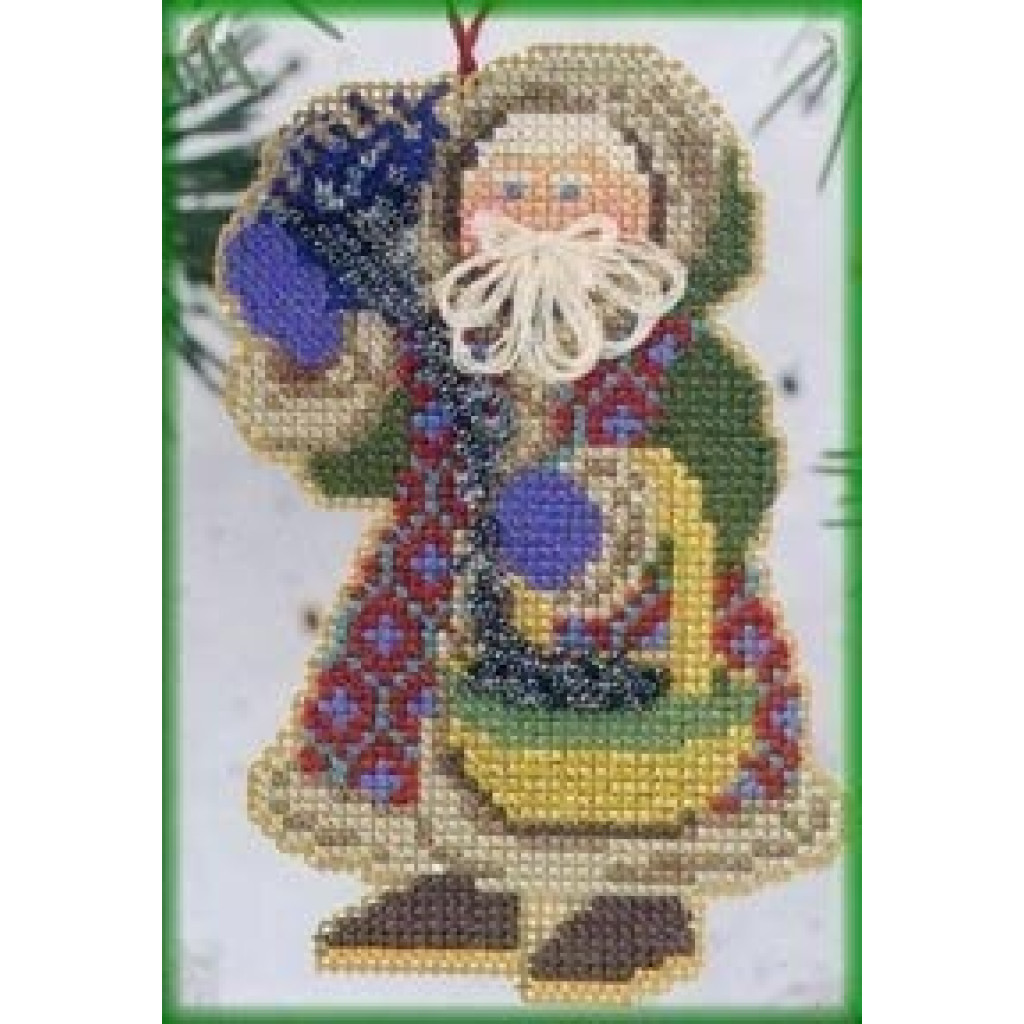 MHNS4 Mill Hill Набір для вишивки рахунковим хрестиком + бісером - Магніт Північне сяйво Санта Northern Lights Santa 8x13 см, перфорований папір