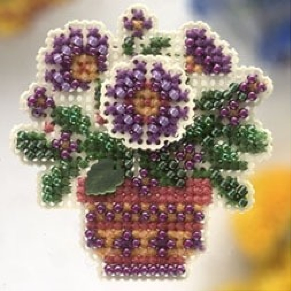 MHSB85 Mill Hill Набір для вишивки рахунковим хрестиком + бісером - Магніт Горщик з первоцвітом Primrose Pot 6x6 см, перфорований папір