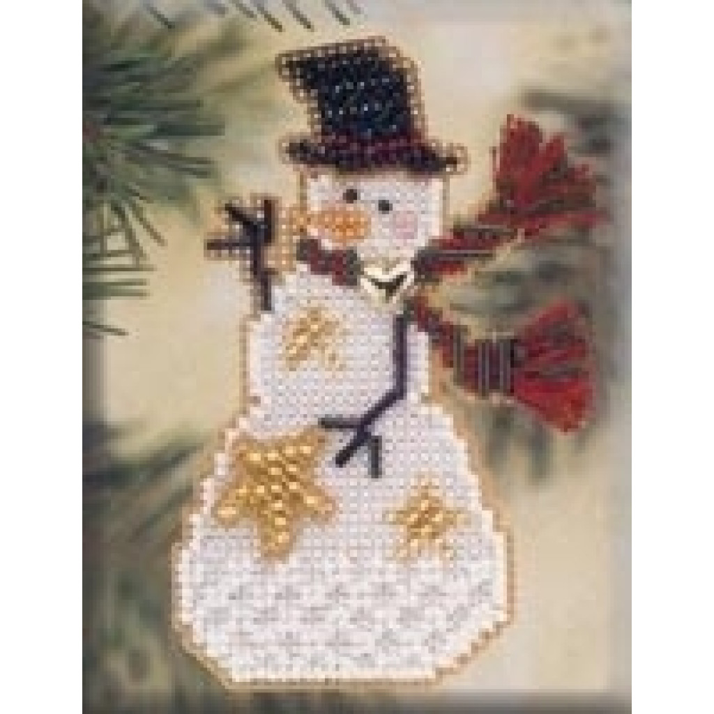MHSC29 Mill Hill Набір для вишивки рахунковим хрестиком + бісером - Магніт Сніговик з зіркою Star Snow 6x9 см, перфорований папір