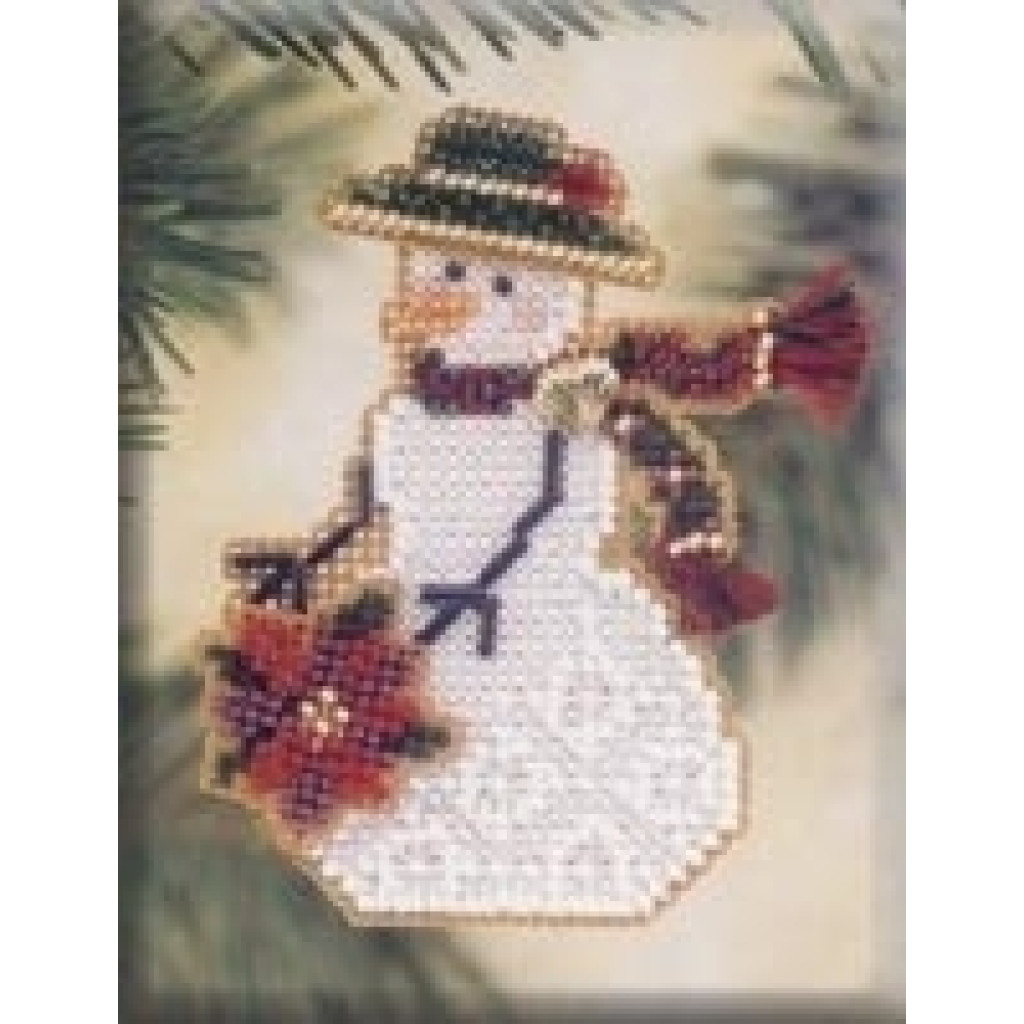 MHSC30 Mill Hill Набір для вишивки рахунковим хрестиком + бісером - Магніт Сніговик з пуантесією Poinsettia Snow 6x9 см, перфорований папір
