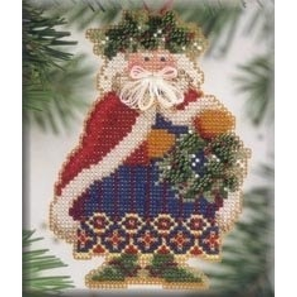 MHWS9 Mill Hill Набір для вишивки рахунковим хрестиком + бісером - Магніт Санта Holly & Ivy Santa 14x8 см, перфорований папір
