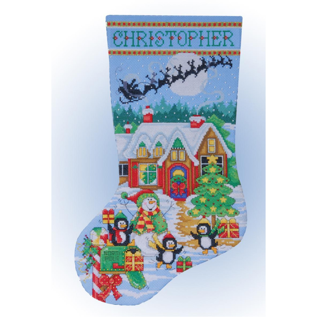 5972 Design Works Набір для вишивки рахунковим хрестиком - Чобіток вечірка пінгвінів 43 см, Aida14