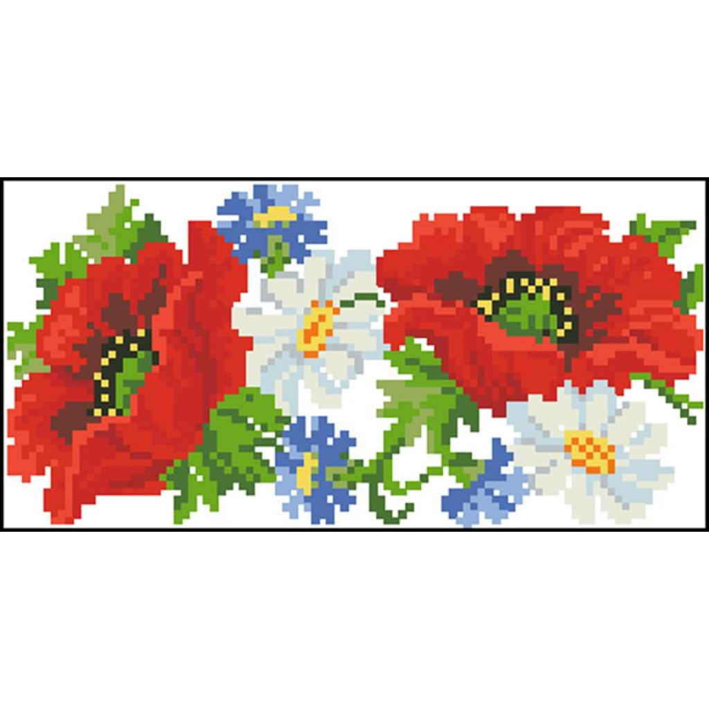 Набір для вишивки нитками пошитого клатча Маки, ромашки, волошки від Барвиста вишиванка призначений для часткової зашивки друкованим хрестиком. Малюнок-схема нанесений безпосередньо на лляну тканину білого кольору стійкими екологічними фарбами, що не змиваються під час дбайливого прання. Заготовка клатча вже пошита, тому ви одразу працюєте з готовою формою виробу, а вишитий візерунок надає аксесуару охайного та виразного вигляду.