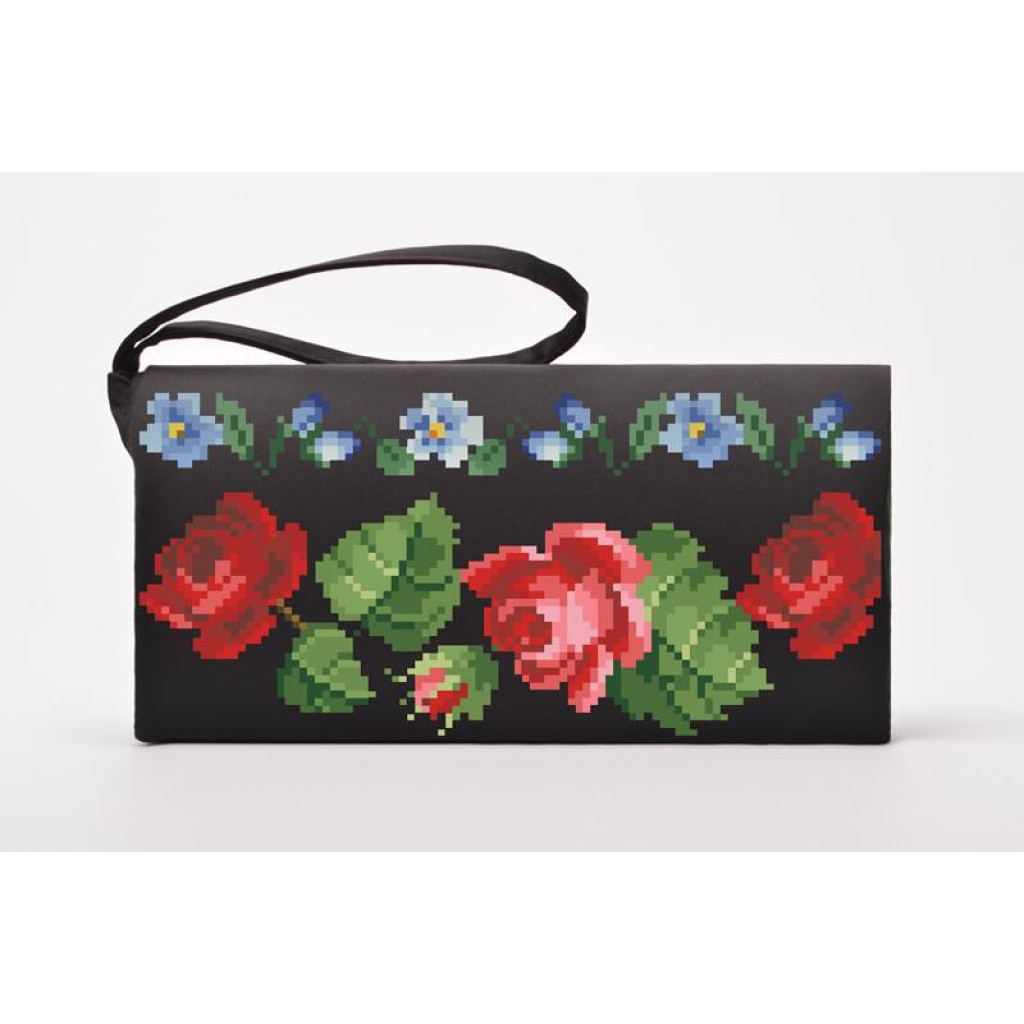 Набір для вишивки нитками пошитого клатча Троянди і незабудки від Барвиста вишиванка призначений для часткової зашивки друкованим хрестиком. Малюнок-схема нанесений безпосередньо на домоткане полотно чорного кольору стійкими екологічними фарбами, що не змиваються під час дбайливого прання. Заготовка клатча вже пошита, тому ви одразу працюєте з готовою формою виробу, а вишитий візерунок надає аксесуару охайного та виразного вигляду.