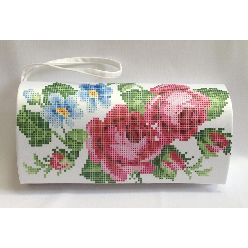 Набір для вишивки нитками пошитого клатча Рожеві троянди, фіалки від Барвиста вишиванка призначений для часткової зашивки друкованим хрестиком. Малюнок-схема нанесений безпосередньо на шовкову тканину білого кольору стійкими екологічними фарбами, що не змиваються під час дбайливого прання. Заготовка клатча вже пошита, тому ви одразу працюєте з готовою формою виробу, а вишитий візерунок надає аксесуару виразного та доглянутого вигляду.