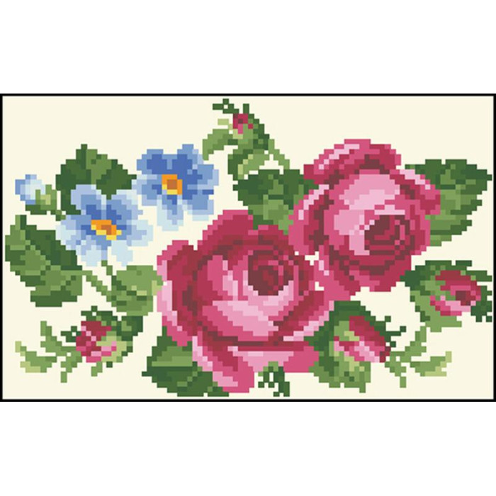 КЛ009шМ1301i Барвиста вишиванка Набір для вишивки друкованим хрестиком - Клатч Рожеві троянди, фіалки 21x13 см шовк, бежевий