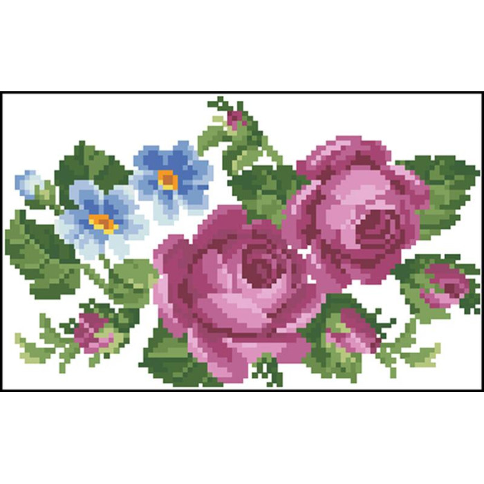 КЛ010шБ1301i Барвиста вишиванка Набір для вишивки друкованим хрестиком - Клатч Лілові троянди, фіалки 21x13 см шовк, білий