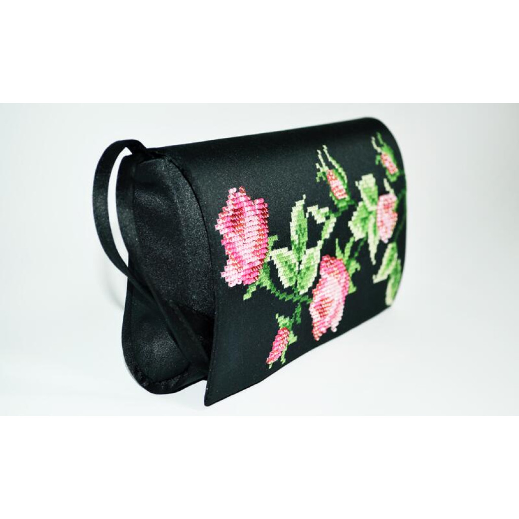 Набір для вишивки нитками пошитого клатча Тендітні троянди від Барвиста вишиванка призначений для часткової зашивки друкованим хрестиком. Малюнок-схема нанесений безпосередньо на домоткане полотно чорного кольору стійкими екологічними фарбами, що не змиваються під час дбайливого прання. Заготовка клатча вже пошита, тому ви одразу працюєте з готовою формою виробу, а вишитий візерунок надає аксесуару охайного та виразного вигляду.
