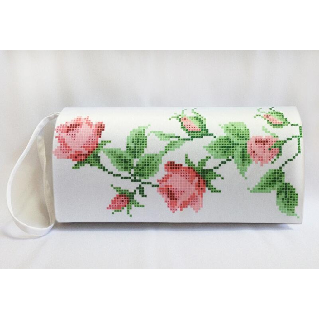 КЛ017шБ1301i Барвиста вишиванка Набір для вишивки друкованим хрестиком - Клатч Тендітні троянди 21x13 см шовк, білий