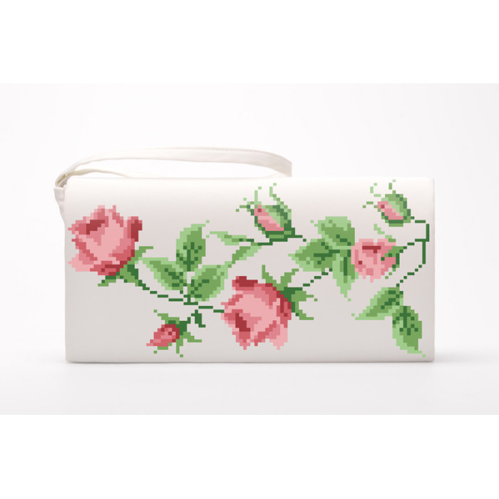 Набір для вишивки нитками пошитого клатча Тендітні троянди від Барвиста вишиванка призначений для часткової зашивки друкованим хрестиком. Малюнок-схема нанесений безпосередньо на шовкову тканину бежевого кольору стійкими екологічними фарбами, що не змиваються під час дбайливого прання. Заготовка клатча вже пошита, тому ви одразу працюєте з готовою формою виробу, а вишитий візерунок надає аксесуару виразного та доглянутого вигляду.