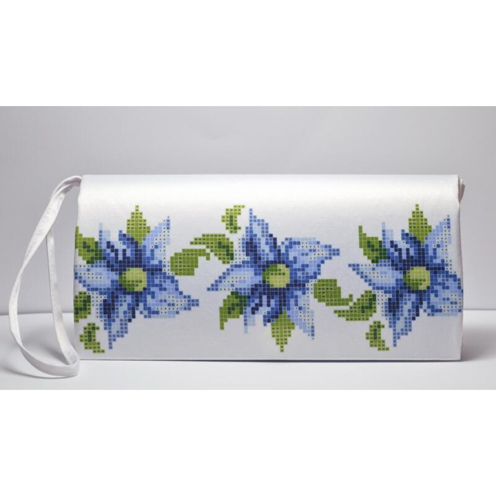 КЛ018дБ1301i Барвиста вишиванка Набір для вишивки друкованим хрестиком - Клатч Сині квіти 21x13 см домоткане полотно, білий