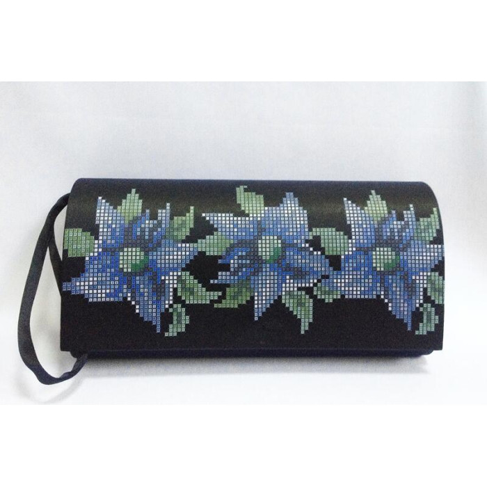 КЛ018кЧ1301i Барвиста вишиванка Набір для вишивки друкованим хрестиком - Клатч Сині квіти 21x13 см атлас, чорний