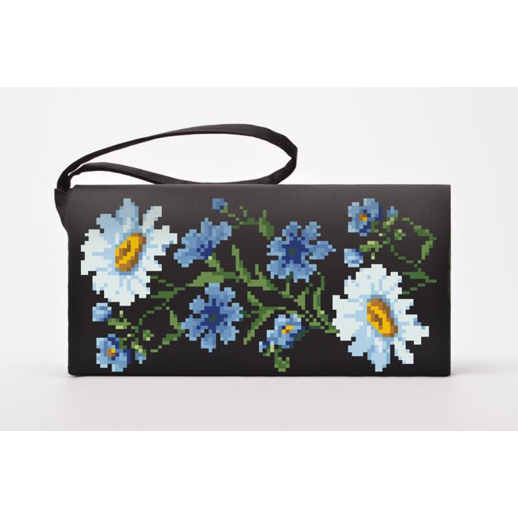 Набір для вишивки нитками пошитого клатча Ромашки і волошки від Барвиста вишиванка призначений для часткової зашивки друкованим хрестиком. Малюнок-схема надрукований безпосередньо на атласній тканині чорного кольору стійкими екологічними фарбами, що не змиваються під час дбайливого прання. Заготовка клатча вже пошита, тому ви одразу працюєте з готовою формою виробу, а вишитий візерунок надає аксесуару охайного та виразного вигляду.