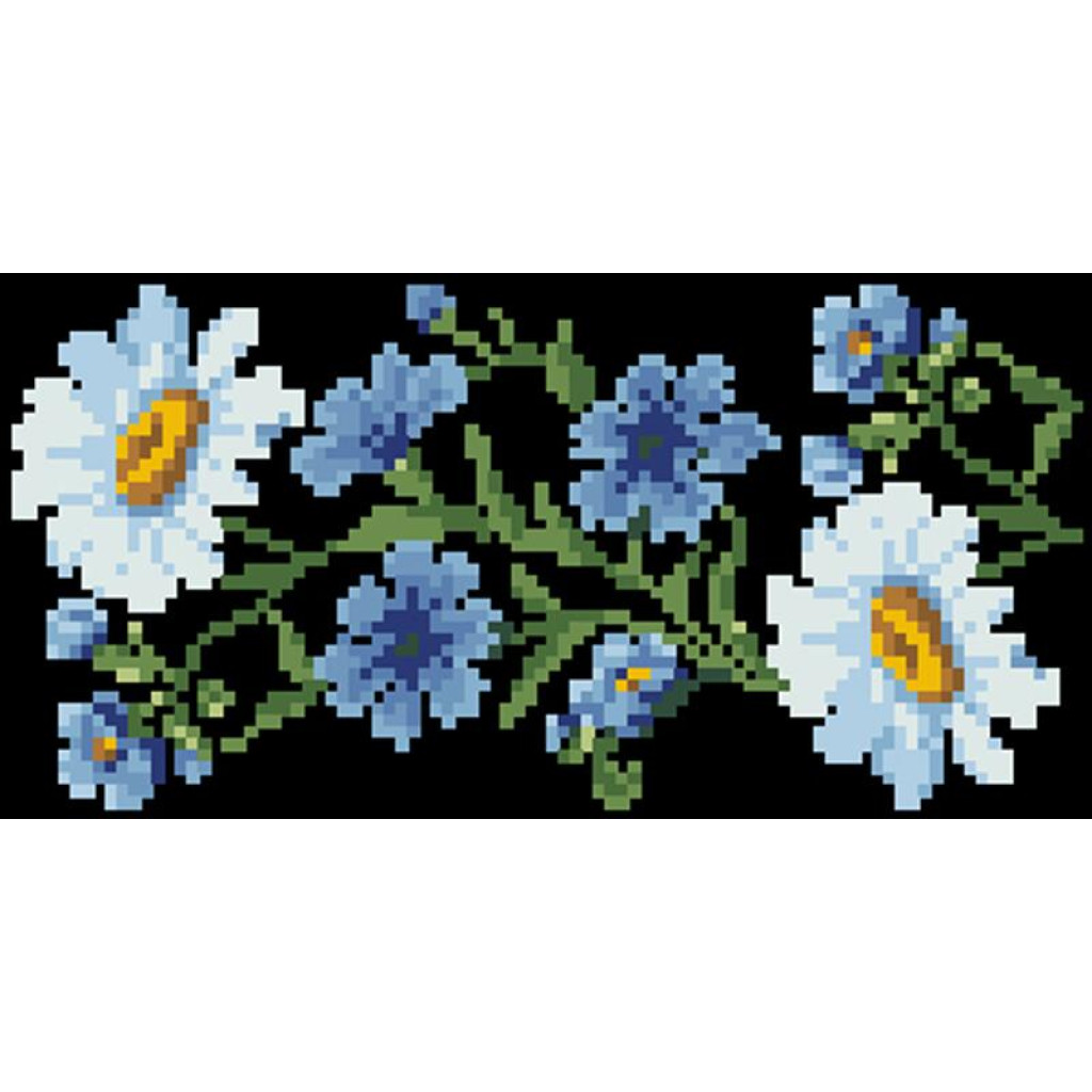 КЛ019кЧ1301i Барвиста вишиванка Набір для вишивки друкованим хрестиком - Клатч Ромашки і волошки 21x13 см атлас, чорний